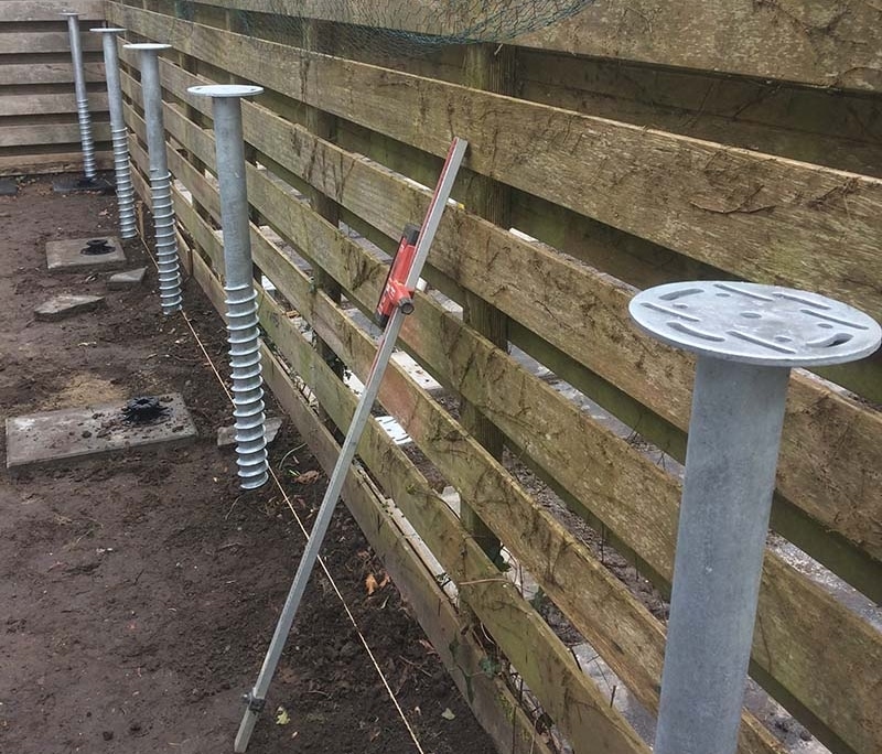 Fundering pergola in Monster met schroefelementen Van Aken Schroeffundering