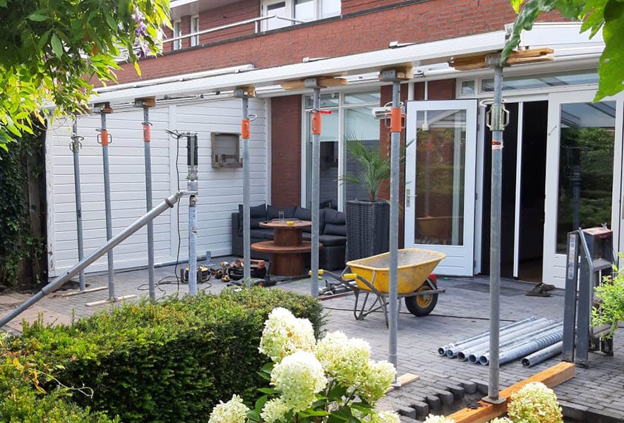 Van Aken Schroeffunderingen heeft recentelijk met succes een project afgerond waarbij een verzakte veranda fundering opnieuw gefundeerd moest worden in zachte grond. De klant had oorspronkelijk de veranda laten bouwen op betonpoeren, maar door de zachtheid van de ondergrond begonnen deze poeren te verzakken, waardoor de veranda scheef kwam te staan.
