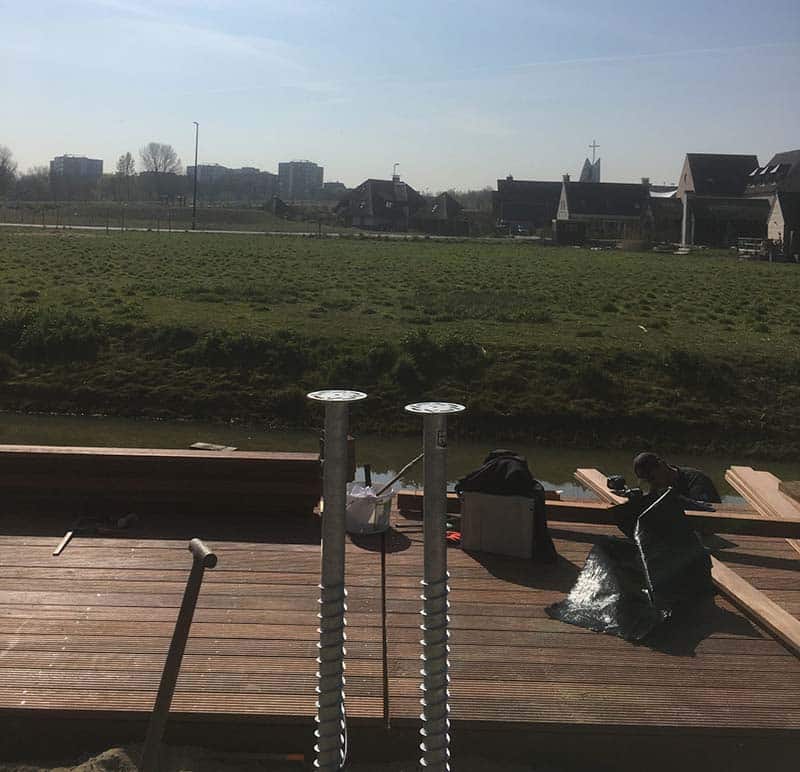 De eigenaren van deze nieuwbouwtuin in Maassluis maakten zich zorgen. Ze wilden een tuinhuis met overkapping direct aan de waterkant plaatsen, een begrijpelijke keuze voor zo’n idyllische locatie. Toch vroegen ze zich af: kan dat wel zo dicht bij het water? Zijn er geen risico’s op verzakkingen? Gelukkig konden wij als specialisten in schroeffunderingen, met onze jarenlange ervaring en expertise, hen al snel geruststellen. Met schroeffunderingen was het mogelijk om het tuinhuis en de overkapping precies daar te plaatsen waar de eigenaren het liefst wilden. Ongelijke ondergronden, zachte of juist harde bodemsoorten; het vormt allemaal geen enkele probleem bij deze manier van funderen!